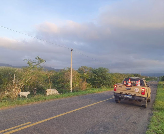 Durante o patrulhamento no km 20, nas proximidades do povoado de Lages, a guarnição identificou bovinos soltos sobre a pista, situação que configurava risco iminente de acidentes. De imediato, a equipe realizou a retirada dos animais e os conduziu a uma área segura, restabelecendo a normalidade do tráfego e prevenindo possíveis ocorrências.