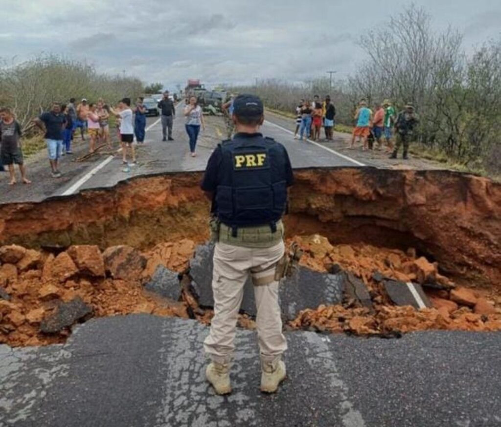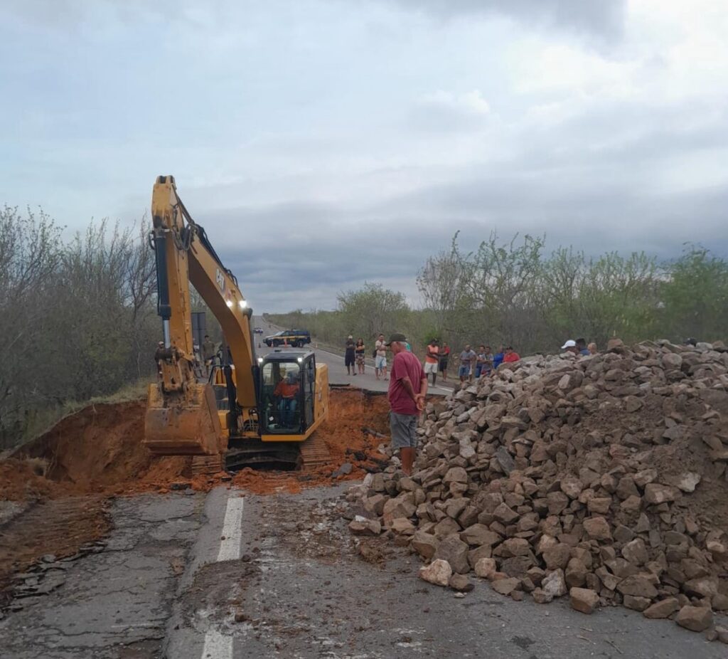 O Departamento Nacional de Infraestrutura de Transportes (DNIT) informa que já iniciou os trabalhos para viabilizar o uso da pista. Técnicos da autarquia realizaram a desobstrução do bueiro e estão atuando na recomposição do aterro com pedra rachão, além de monitorar o trecho afetado. previsão inicial do DNIT é concluir os serviços emergenciais ainda nesta sexta-feira (21), possibilitando a liberação parcial da rodovia. A expectativa é que o fluxo seja restabelecido integralmente até a próxima segunda-feira (24). Enquanto isso, a Polícia Rodoviária Federal (PRF) controla o tráfego no local