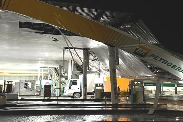 Fortes chuvas atingiram a cidade de Capim Grosso no início da noite desta terça-feira (27) e provocaram a queda de parte da estrutura do posto de combustível Elite, localizado às margens da BR-324, próximo ao posto da Polícia Rodoviária Federal (PRF).