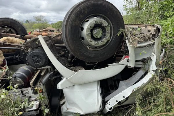 Um grave acidente registrado na madrugada desta quinta-feira (8) deixou duas pessoas mortas na BA-130, no trecho entre os municípios de Mairi e Baixa Grande, no interior da Bahia.De acordo com as informações iniciais, um caminhão VW/30.330 CRC 8X2, de cor branca e placa RDF-3F16, licenciado em Juazeiro, capotou na chamada Curva do Sebo, já no território do município de Mairi.