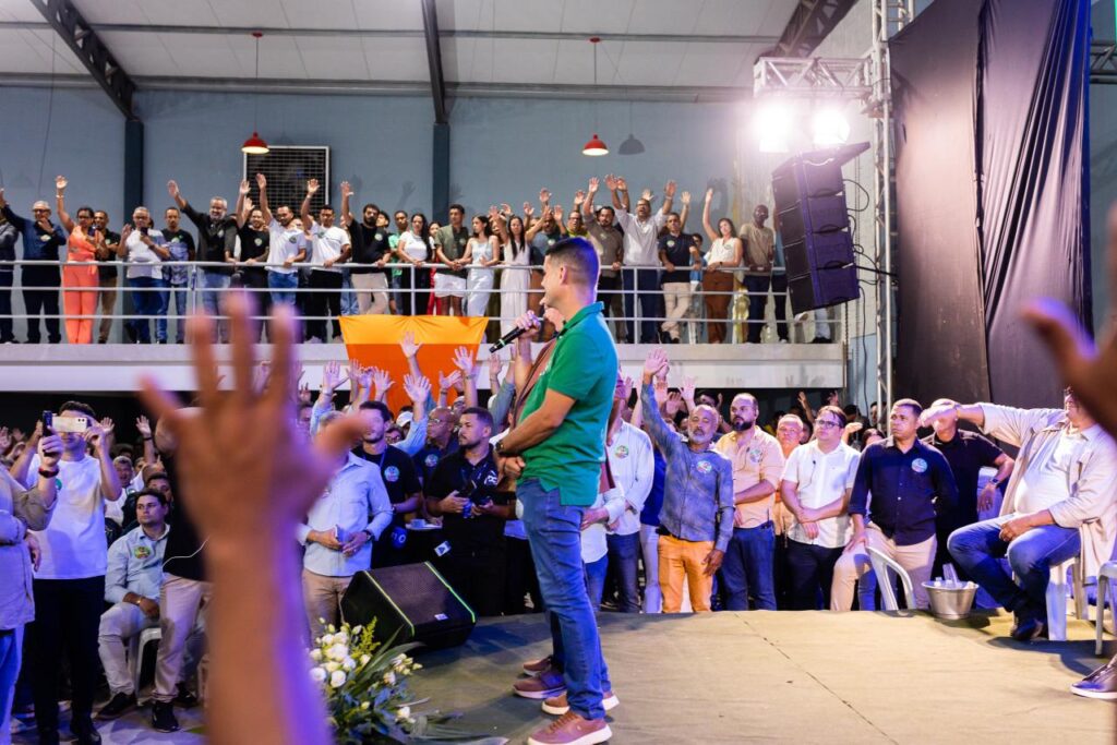Durante os discursos, Diego Coronel e Ângelo Coronel reforçaram apoio ao nome de Thiago Gilleno, ressaltando sua capacidade de diálogo e compromisso com as demandas da população.