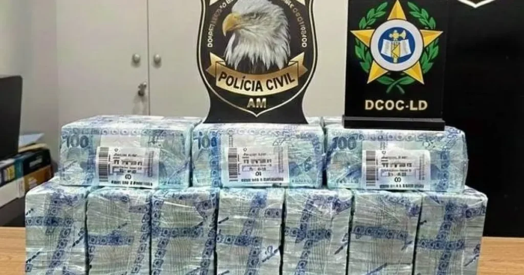 A apreensão aconteceu em Manacapuru, região metropolitana de Manaus, e o dinheiro, segundo as investigações, seria enviado ao Comando Vermelho.