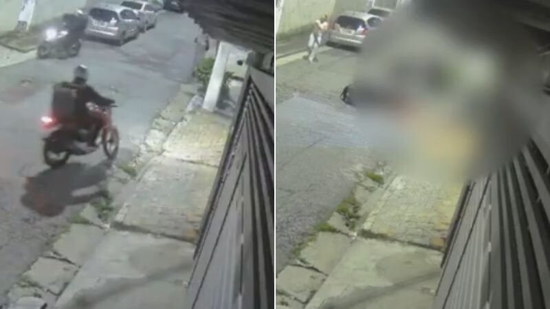 Nas imagens, a dupla chega ao local em duas motocicletas e aborda a vítima, que caminhava sozinha pela rua. A mulher levanta as mãos, aparentando se render, e entrega pertences aos assaltantes. Em seguida, ela abre a mochila, saca uma arma e efetua disparos contra os suspeitos.