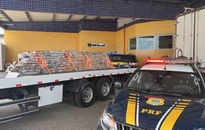 A Polícia Rodoviária Federal (PRF) apreendeu 1.914 quilos de maconha que eram transportados no teto de um caminhão frigorífico, durante uma abordagem na BR-407, em Juazeiro, no norte da Bahia, próximo à divisa com Petrolina (PE).
