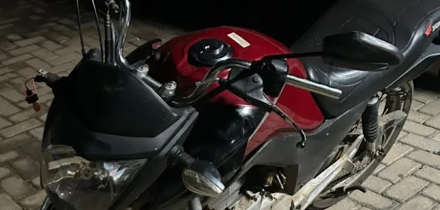 - Uma motocicleta com chassi adulterado, possivelmente produto de furto ou roubo.